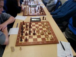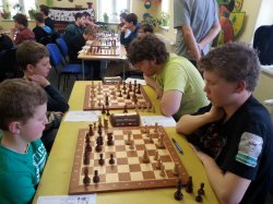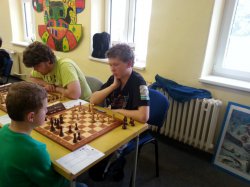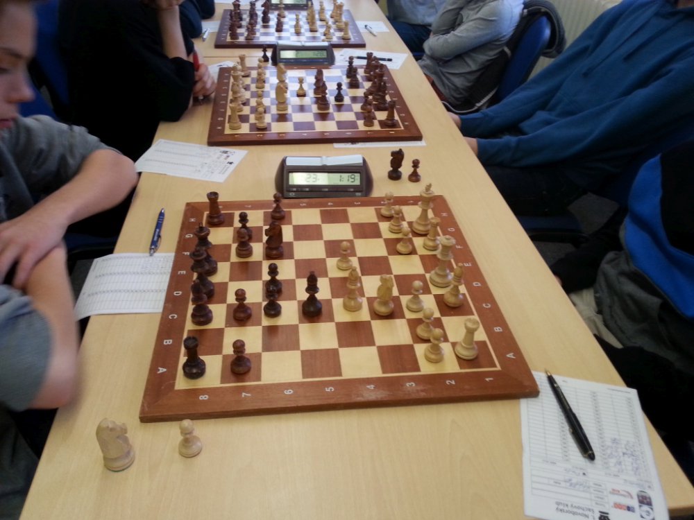 V tomto zápase jsme rozhodně favorité nebyli, přesto je prohry škoda. Partie ze zápasu viz níže. Vašek vyšel ze zahájení lépe, zkazil rošádu soupeři, bohužel se pak následně rozhodl pro velkou rošádu do né uplně zajištěné pozice a v napínavé koncovce vzdal pod matem. Naopak Jakub Volenec si vzal k srdci moji kritiku, a majíce výrazně silnějšího soupeře jej krásně přehrál a i ten se pod matem vzdal. Bylo zase 1-1. Jakub Doubek měl štěstí, že si soupeřka nevěděla v koncovce, viz partie, rady a přijala remízu, podle mě to měla vyhrané, podle svého trenera také. Sucharda nachytal Kryštofa na švestkách a sebral mu figuru, bohužel občas i Kryštof přehlédne dvojtažku. Skvěle však zahrál Julián, a ziskem figury partii brzo rozhodl. Znovu vše zůstalo na Jirkovi, který však neměl dobrý víkend. Jirka měl partii dlouho vyhranou, poměrně jasně, pak se však zapletl do svých kliček, dostal se do časové tísně, v závěru chyboval a bohužel prohrál.