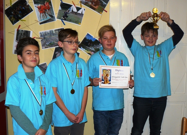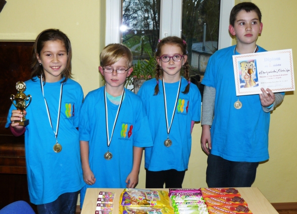V kategorii 1.stupně hrálo o postup do kraje 10 družstev, každé devět zhruba půlhodinových zápasů. Starší žáci hráli jen čtyři kola, zato v dvojnásobném čase. Tým ZŠ Partyzánská A ve složení Filip Sichrovský (8,5 b), Nikola Kulašová (7,5b), František Zákutný (9b!) a Adéla Novotná (8b )získal 33 bodů z 36 možných a nechal za sebou družstva ZŠ Náměstí Míru (Jan Kaplánek, Jiří Hájek, Lukáš Fafala a Michal Trmal) a ZŠ Arnultovice (Patrik Vomela, Tadeáš Ležák, Matyáš Roh, Fanda Pomeisl, Kryštof Roh a Filip Vokál) o 6 a 9 bodů. Zlaté medaile získala ZŠ Partyzánská (Martin Habenicht, Jakub Štejnar, Vojta Talman a Adam Sebai) suverénně i ve starší skupině před školami z Náměstí Míru Nový Bor (Natálie Gorolová, Imrich Sinu, Jakub Sirový, Tomáš Vytlačil) a Kamenický Šenov (Kryštof Hofman, David Semak, Lukáš Gregor a Kryštof Malý). První dva týmy z obou kategorií postupují do únorového krajského kola do Liberce.