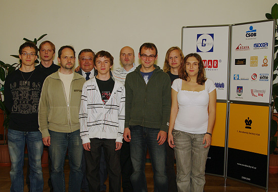 1. Novoborský ŠK "B" - 1. liga: (zadní řada) Viktor Novotný, Marek Vokáč, Petr Boleslav, Jan Oreský. (přední řada) Jan Vrána, Petr Kučera, Marek Braun, Martin Vaculík a Lucie Jínová (foto: Vladimír Jagr)