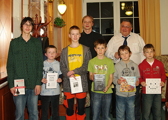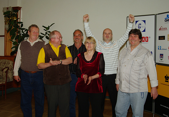 Přebor oddílu 2009/2010: (zleva) Václav Bartoš, bronzový Miloš Koudelka, Jaroslav Tryhuba, Alžběta Majstrová, přeborník Petr Boleslav a Jiří Majstr. (foto: Vladimír Jagr)