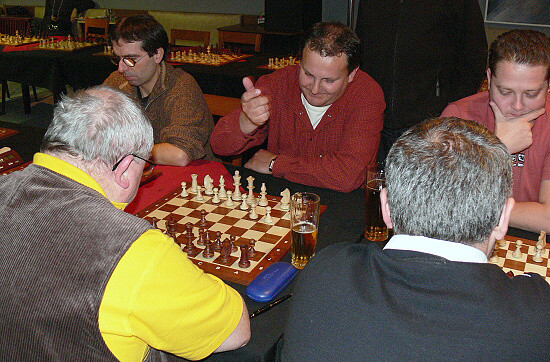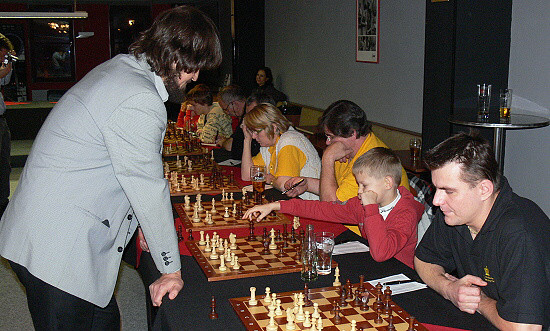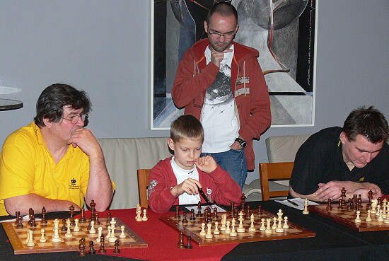 Po simultánce jsme uspořádali malý turnájek partnerů našeho klubu. Zaťaté pěstičky Vítka Páznera daly soupeři, Josefovi Havránkovi (Nexor), jasně najevo: "Přese mě to nepůjde!".