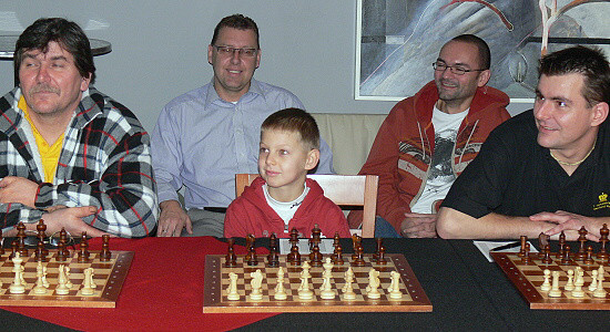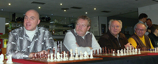 Dále zasedly stálice našich klubových šachovnic (zleva): Roman Boreš, Václav Bartoš, liberecký František Babický a Miloš Koudelka.